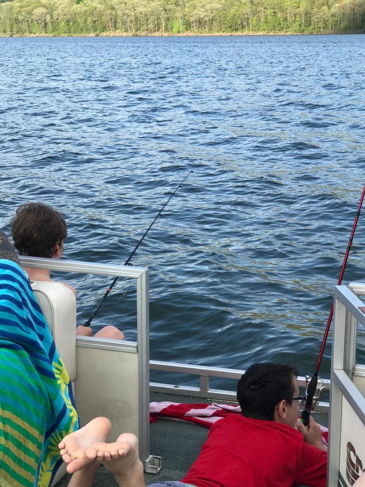 Day two arrived and we were feeling ambitious. Fishing pools in hand we decided to rent a boat and try our luck at the reservoir. In the past we would have opted to go skiing but someone doesn’t trust me to pull them on her skis anymore, I won’t mention any names. We headed down to the Dam and made our way to the Wolf Run Marina located only a few miles away from our site.