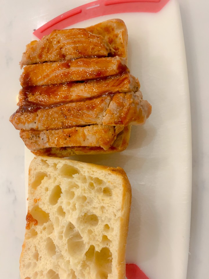 - Place pork chop onto the bun and cover again with BBQ sauce